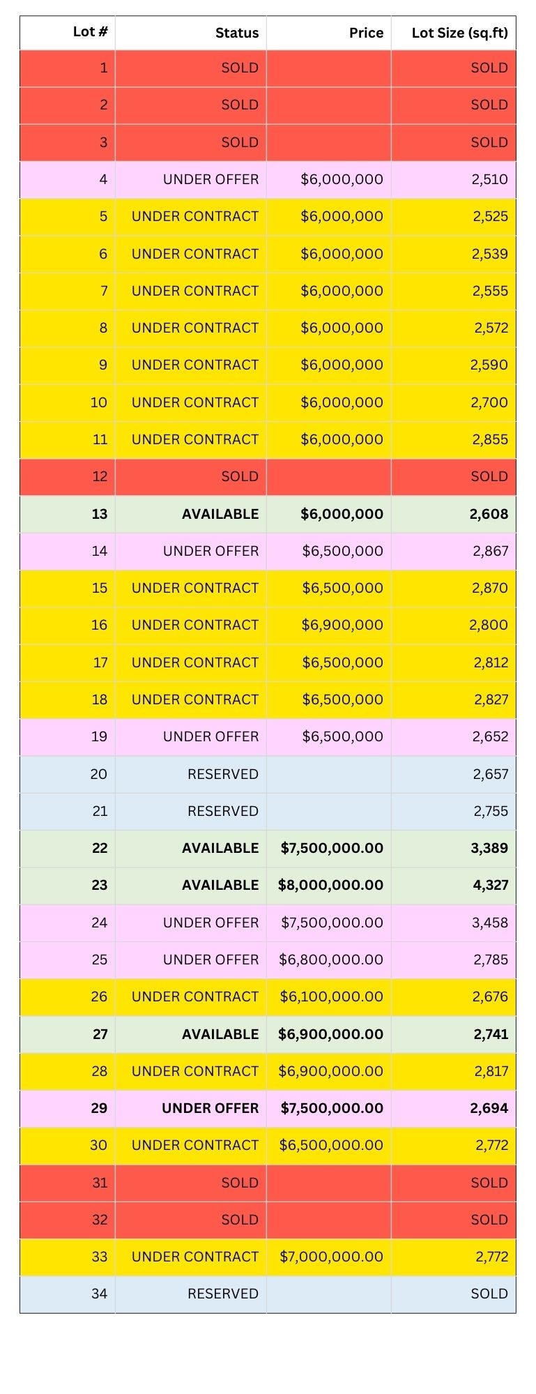Lot Size and Prices